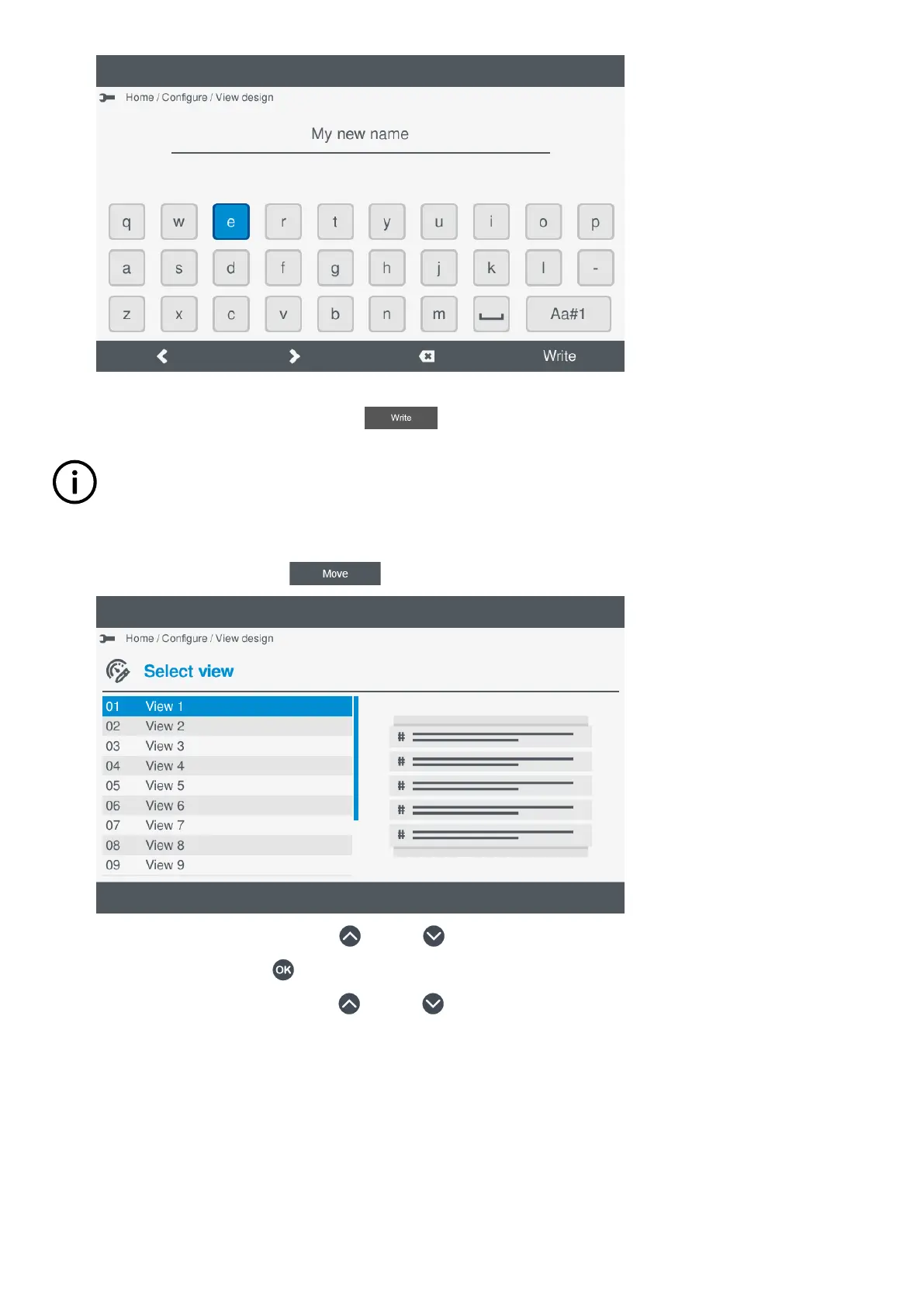 4. Confirm the new view name by pressing Write .
