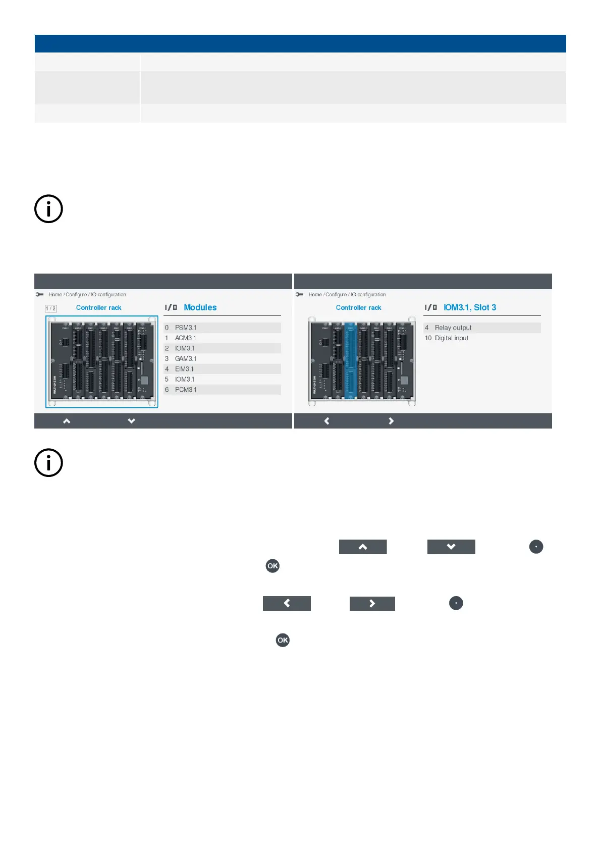 Select the controller or extension unit by pressing OK .