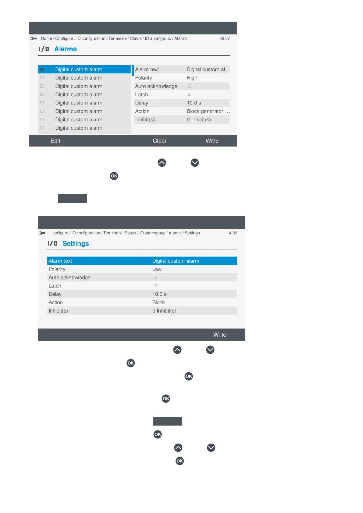 ◦ If the setting is text or a value, pressing OK displays the virtual keyboard to alter the setting.