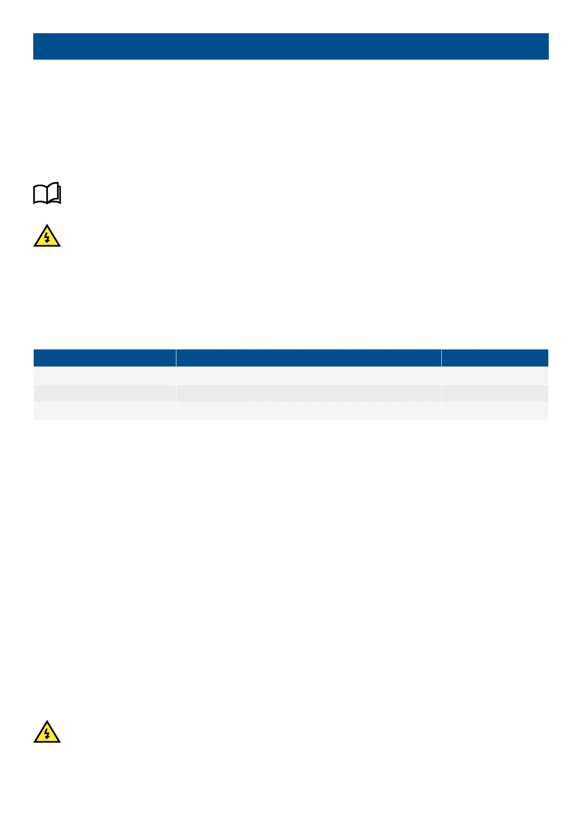 Installing and operating the equipment may require work with dangerous currents and voltages. The installation must only be carried