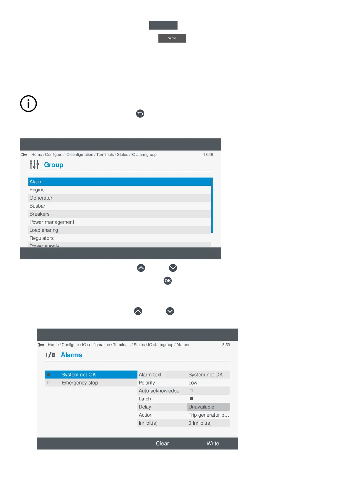 • A further group may be shown or the alarm list to select the actual alarm(s).