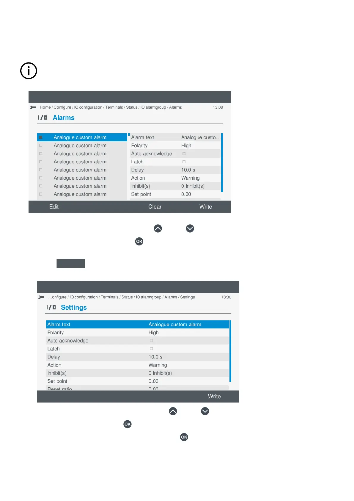 To create a new alarm, edit one of the available Analogue custom alarms listed.