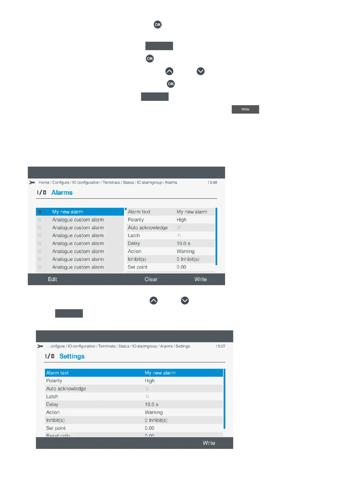 c. Once you have made all the required changes to the alarm settings, select Write .