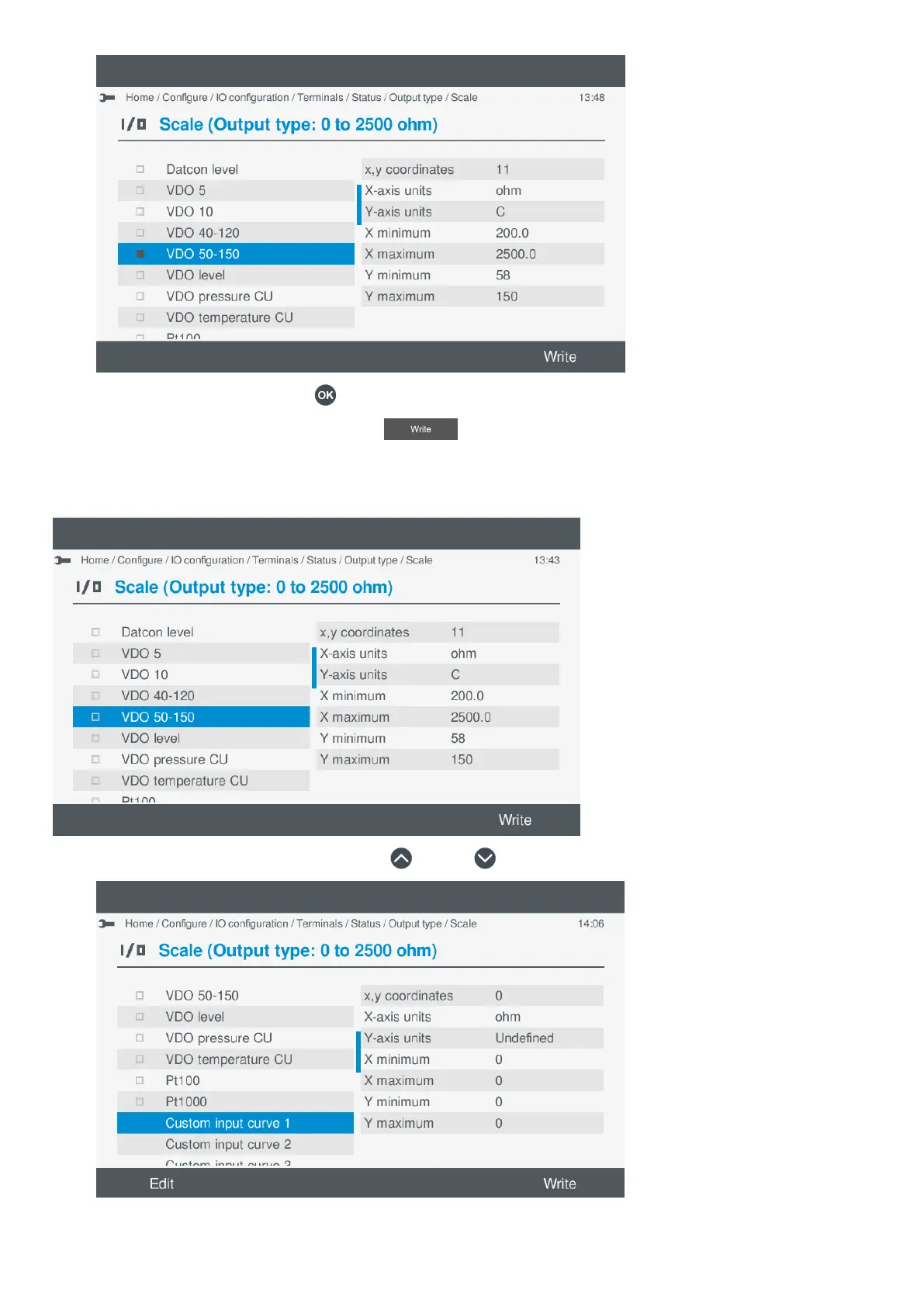 3. To save the settings to the controller, select Write