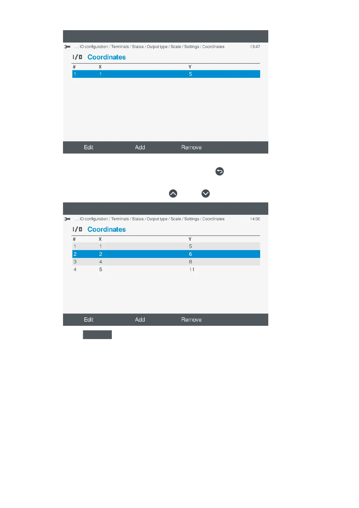 a. Highlight the coordinate to edit, by pressing Up or Down .