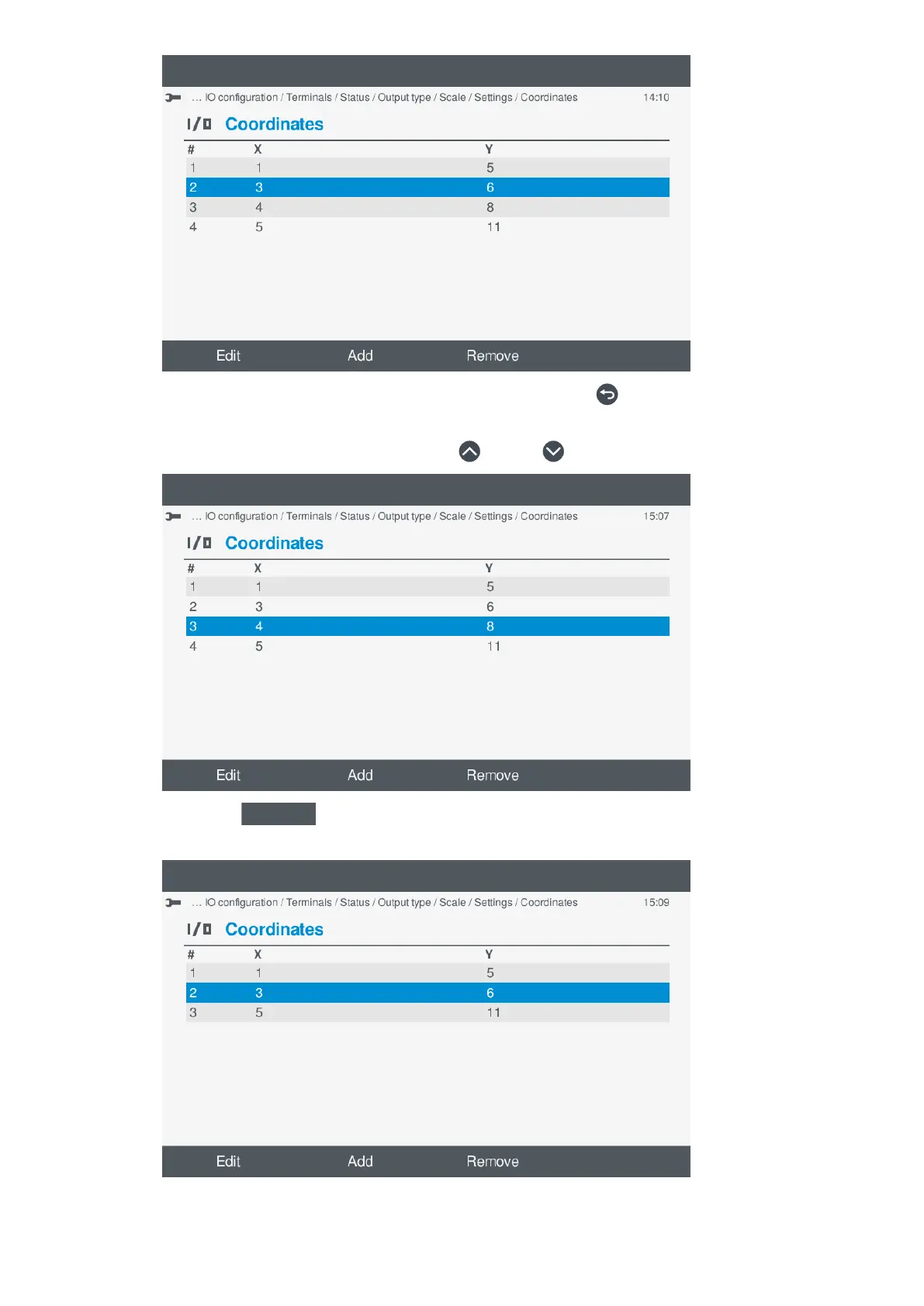 a. Highlight the coordinate to remove, by pressing Up or Down .
