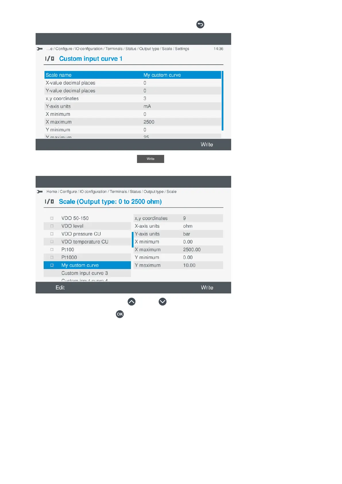 5. When you have added/edited all the coordinates you require, press Back to return to the curve settings.