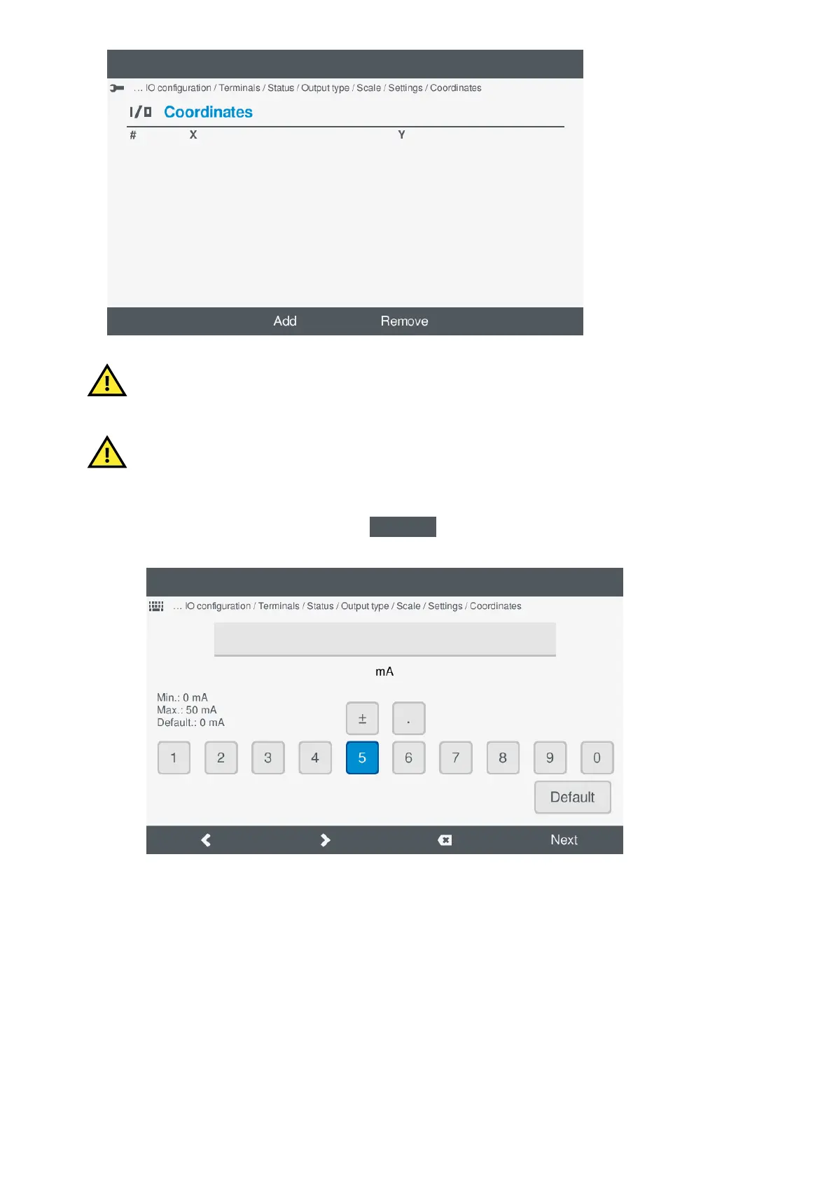 b. Enter the x-axis coordinate using the Virtual keyboard: