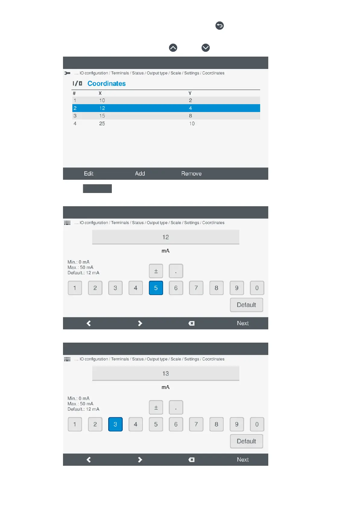 ◦ The Virtual keyboard is shown on the display for the x coordinate.