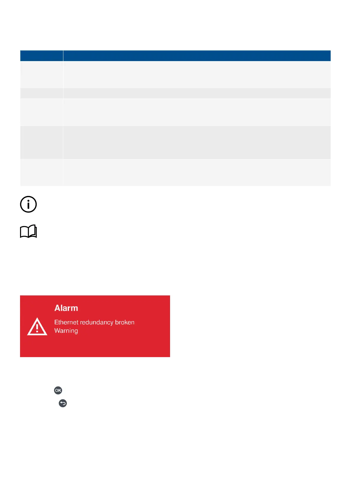 Acknowledging an alarm does not remove the alarm or active protection if the Alarm condition continues.