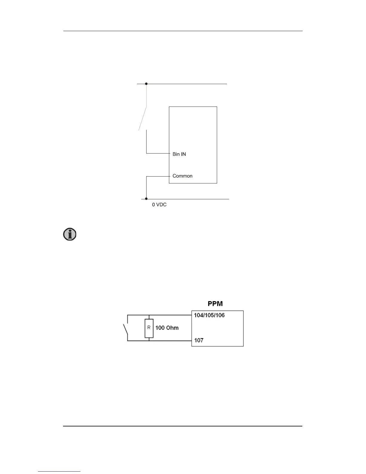 All binary inputs are 12/24V DC bi-directional optocoupler. Typical input is: