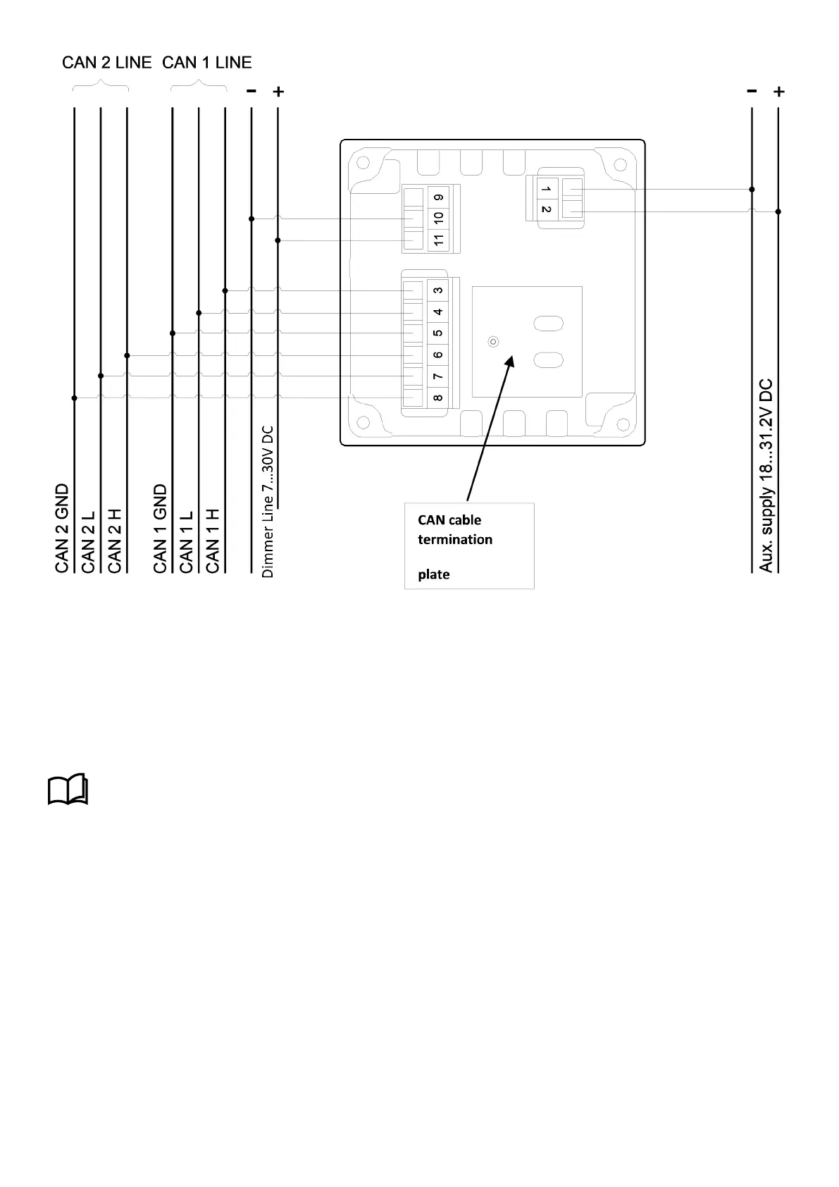 The illumination can be controlled from the CANopen line or by the dimmer line on terminals 10 and 11.