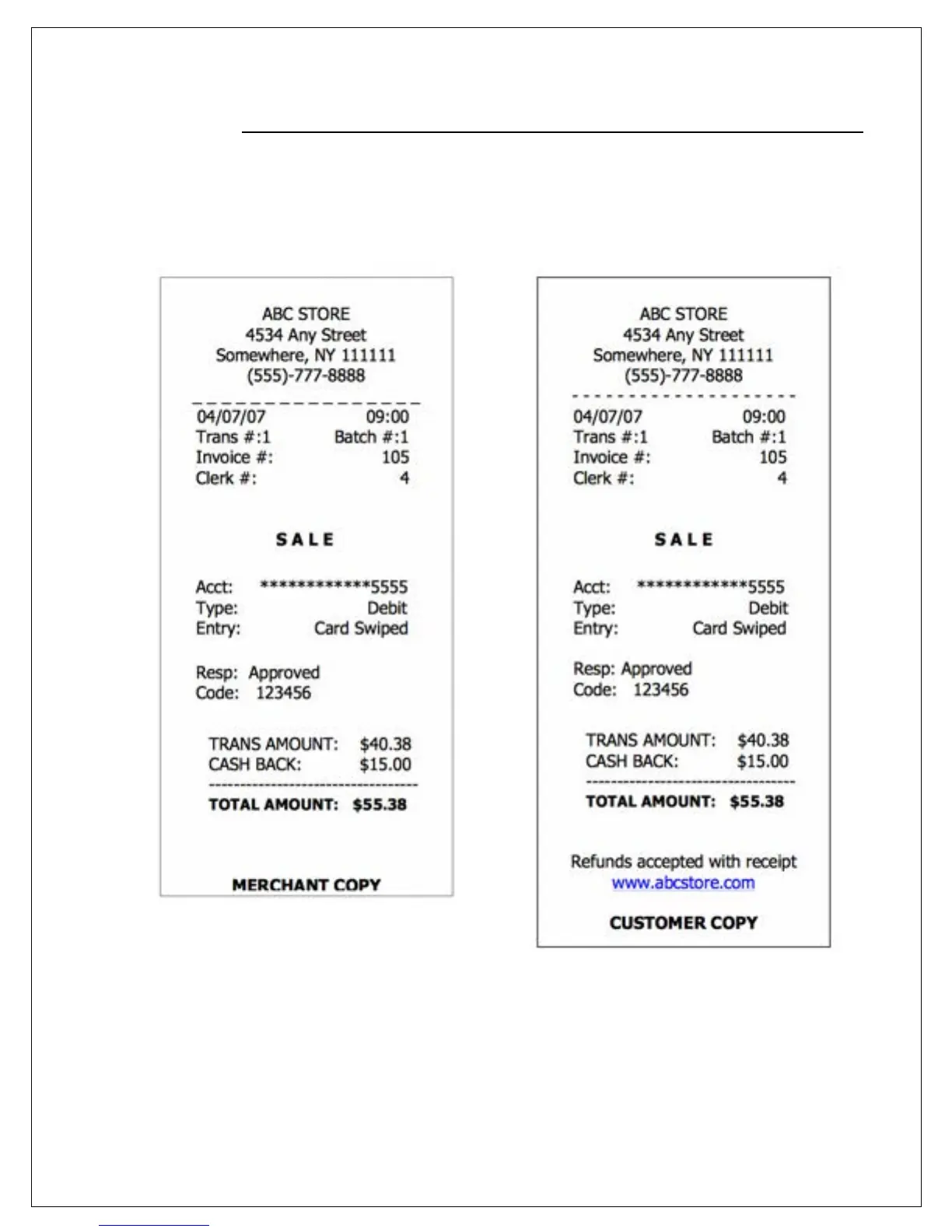 ETAIL RECEIPT DEBIT SALE