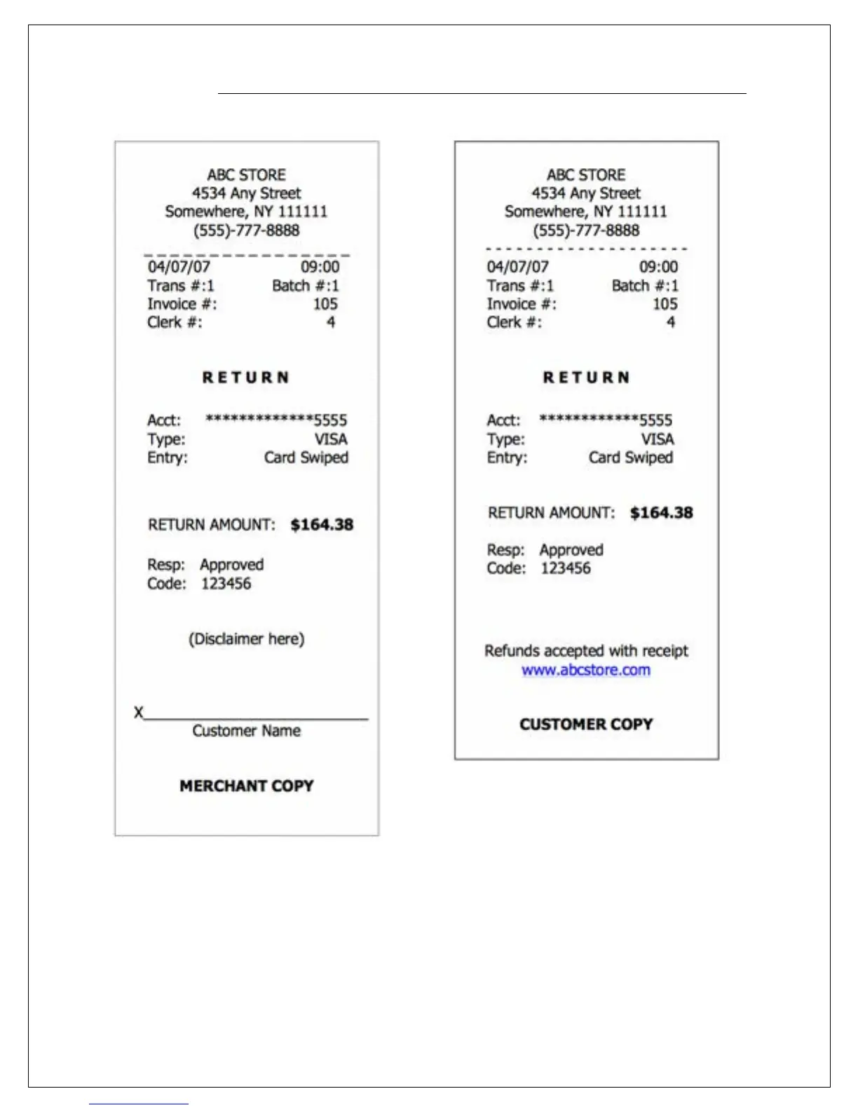 MERCHANT COPY CUSTOMER COPY