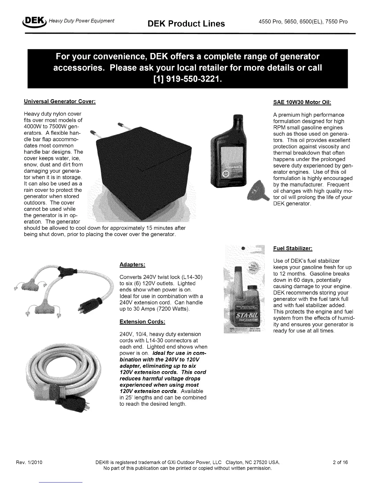 Heavy Duty Power Equipment DEK Product Lines 4550 Pro, 5650, 6500(EL), 7550 Pro
