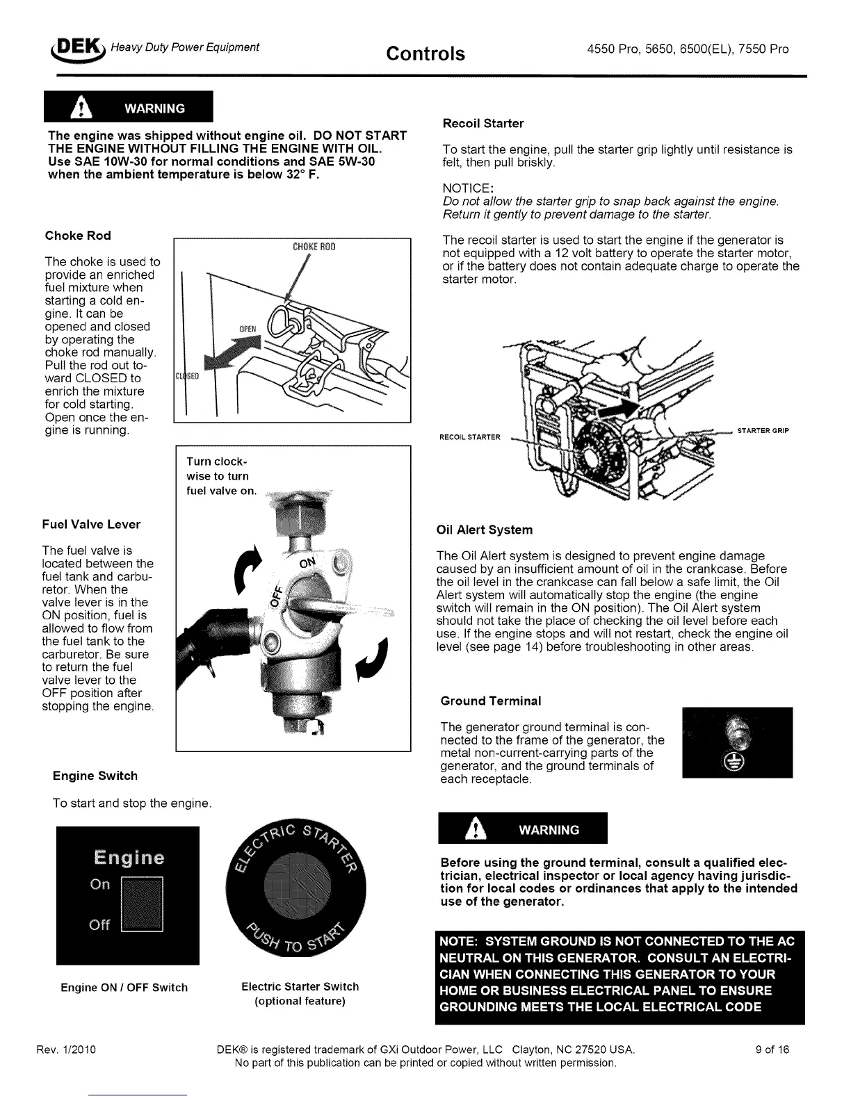 Heavy DutyPowerEquipment Controls 4550 Pro, 5650, 6500(EL), 7550 Pro