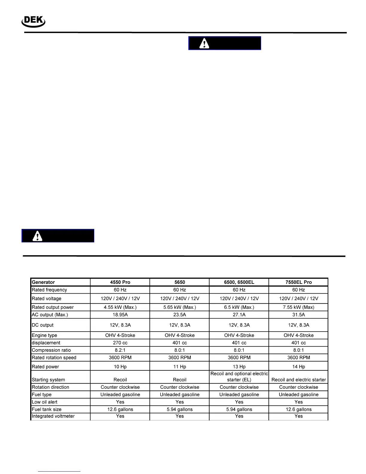 DEK® is registered trademark of GXi Outdoor Power, LLC Clayton, NC 27520 USA.