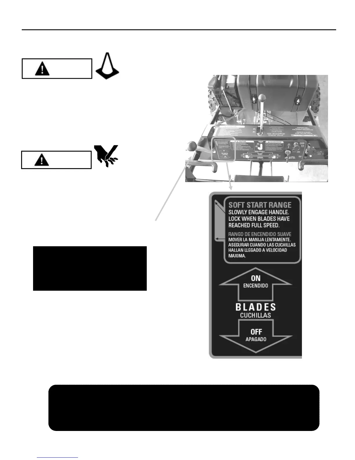 IMPORTANT! The brush mower blades do NOT stop quickly. Visual indication that the blades are