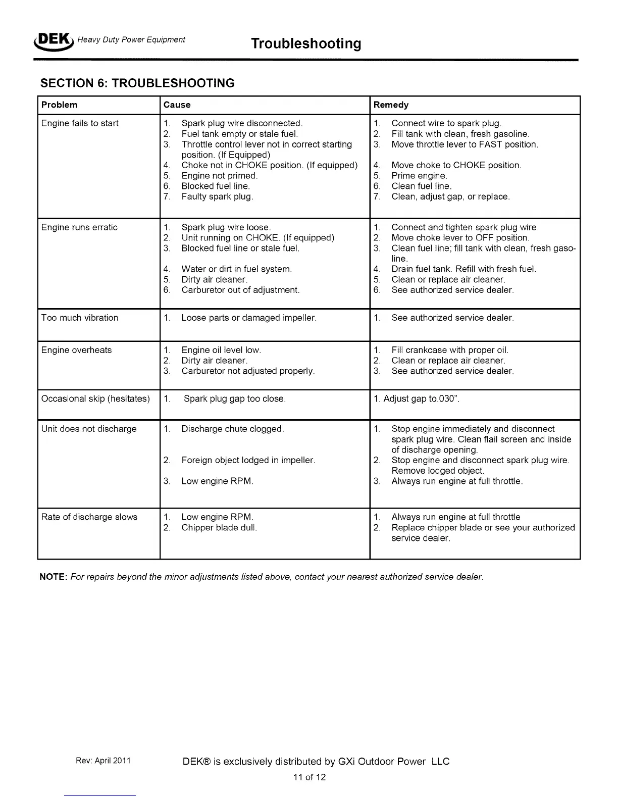 DEK® is exclusively distributed by GXi Outdoor Power LLC