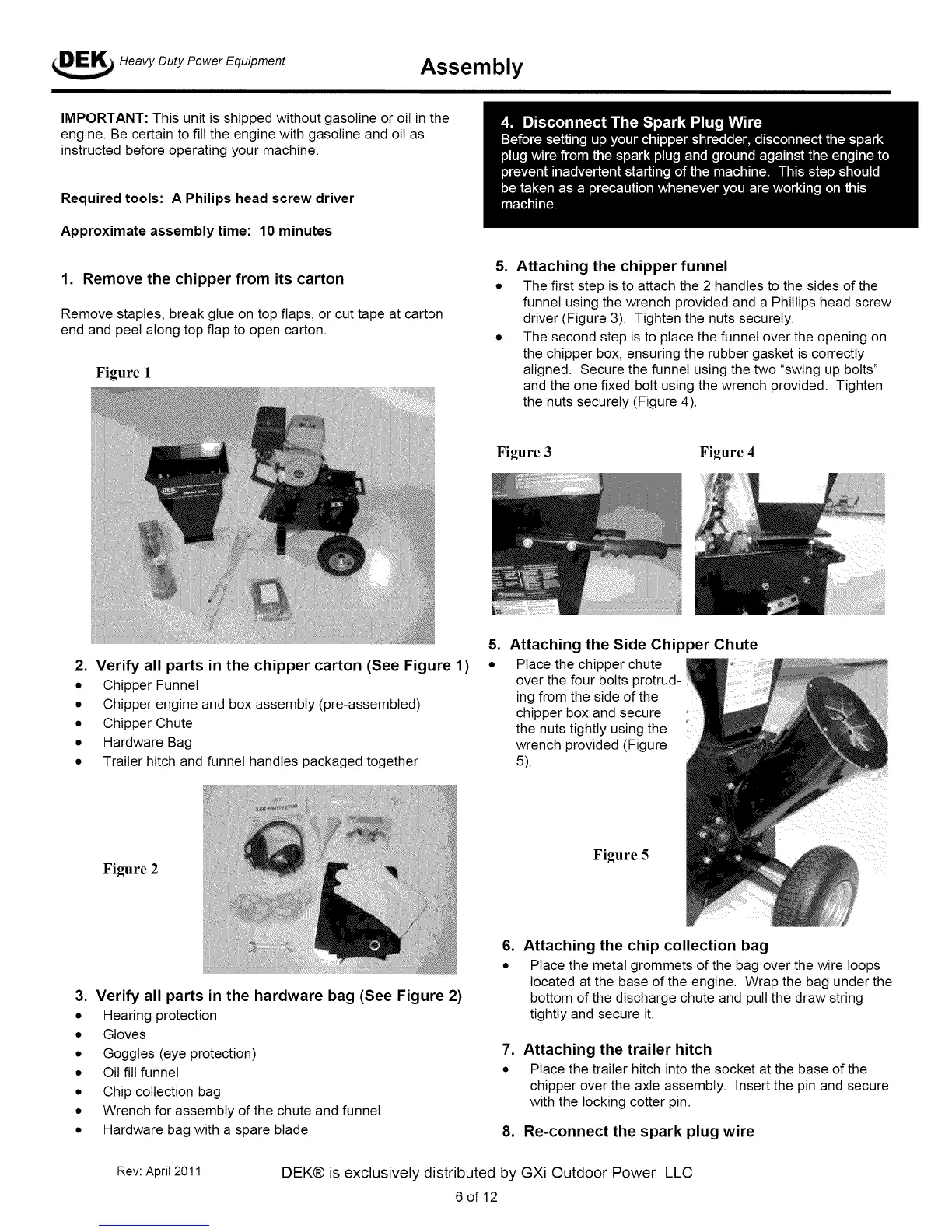 1. Remove the chipper from its carton