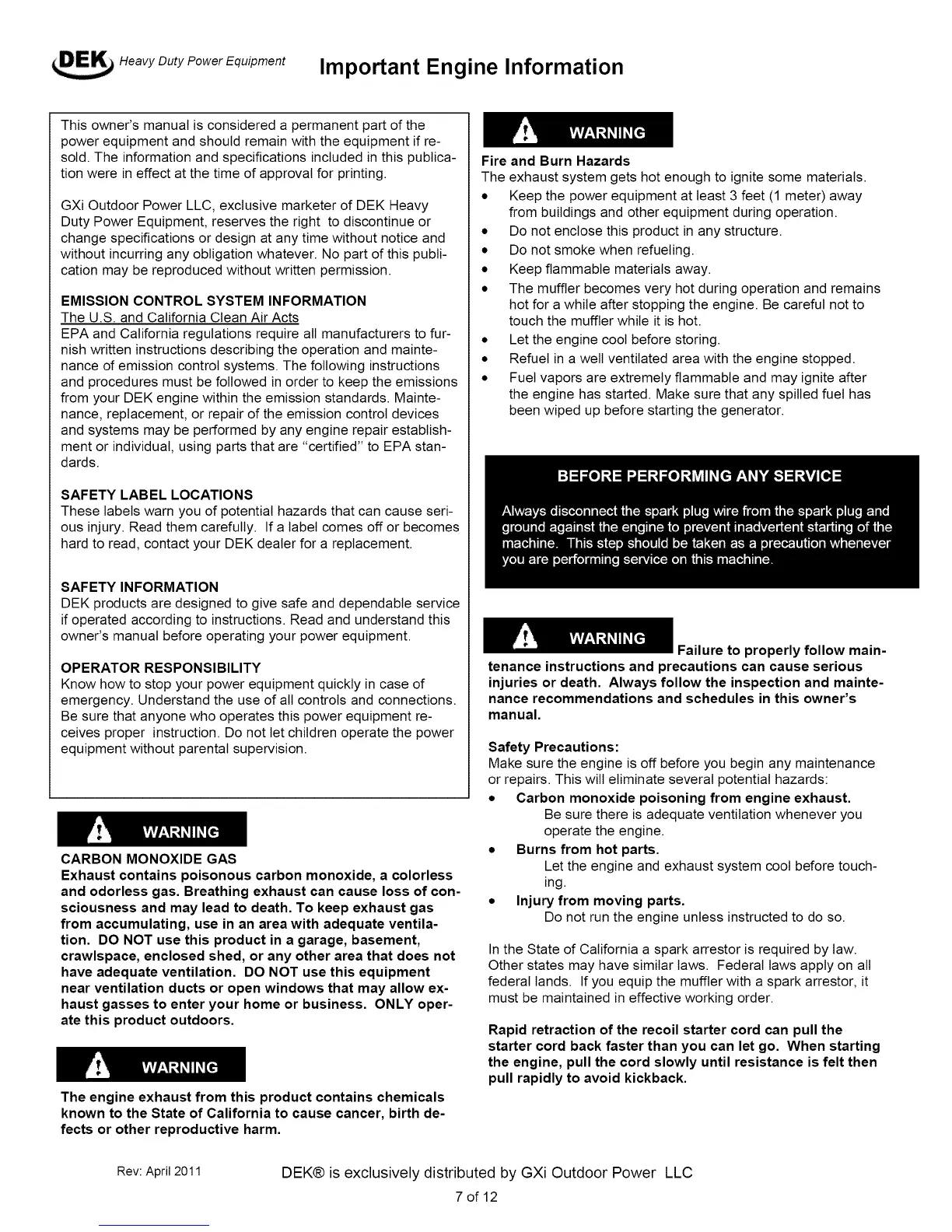 DEK® is exclusively distributed by GXi Outdoor Power LLC