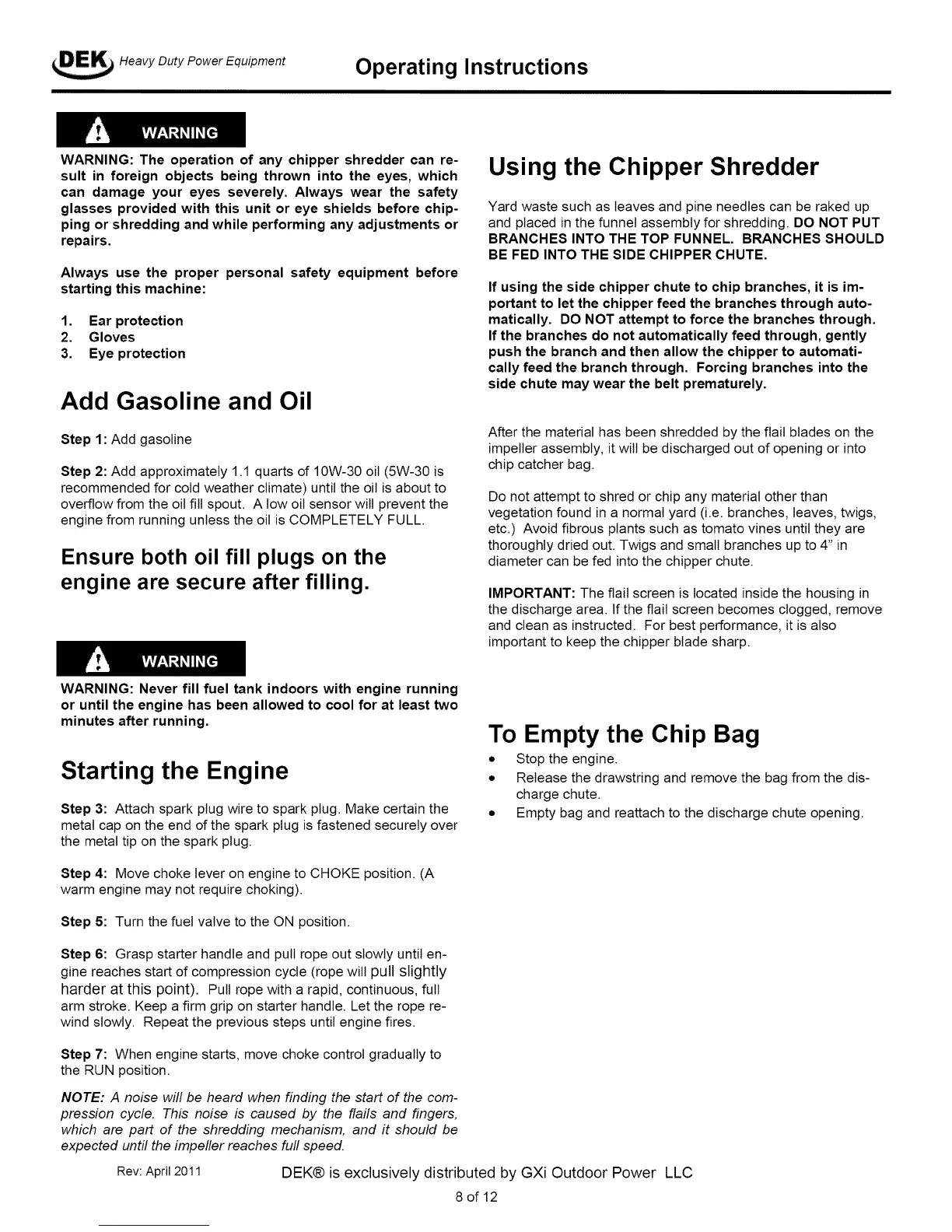 DEK® is exclusively distributed by GXi Outdoor Power LLC