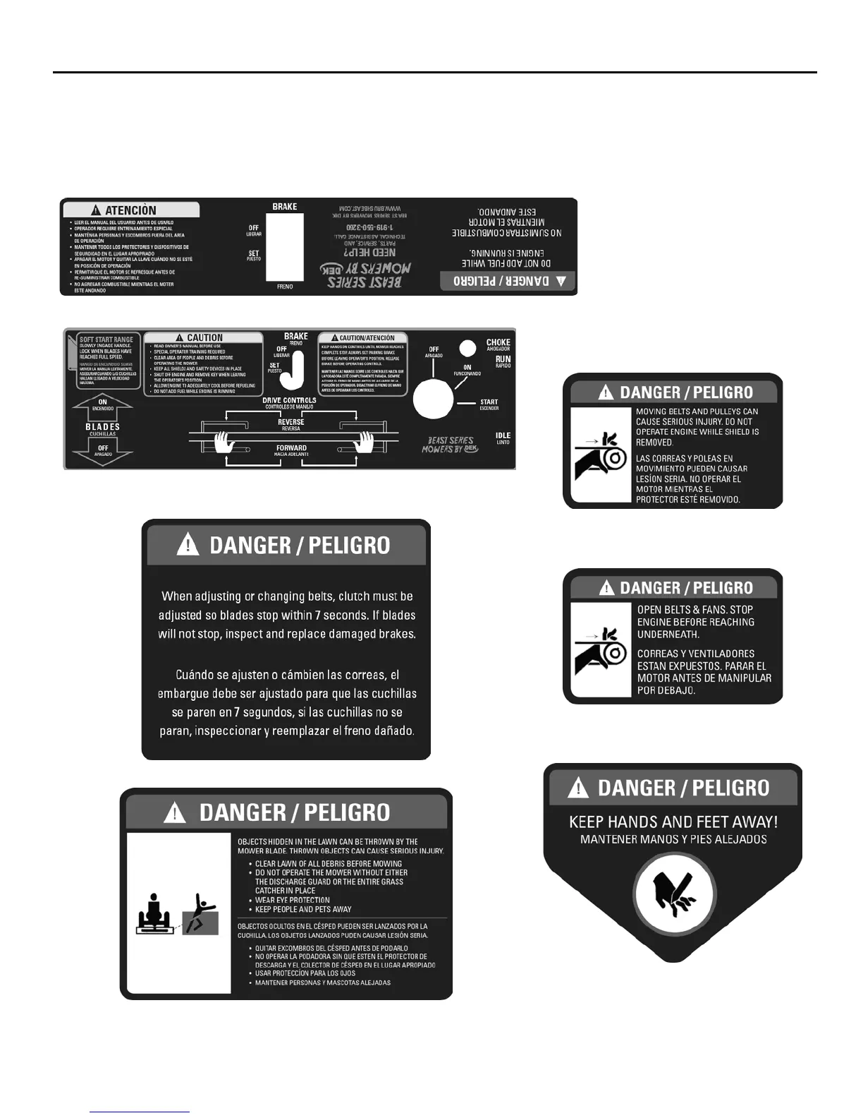The labels shown below are located on your mower to warn you of potential hazards and provide you with important