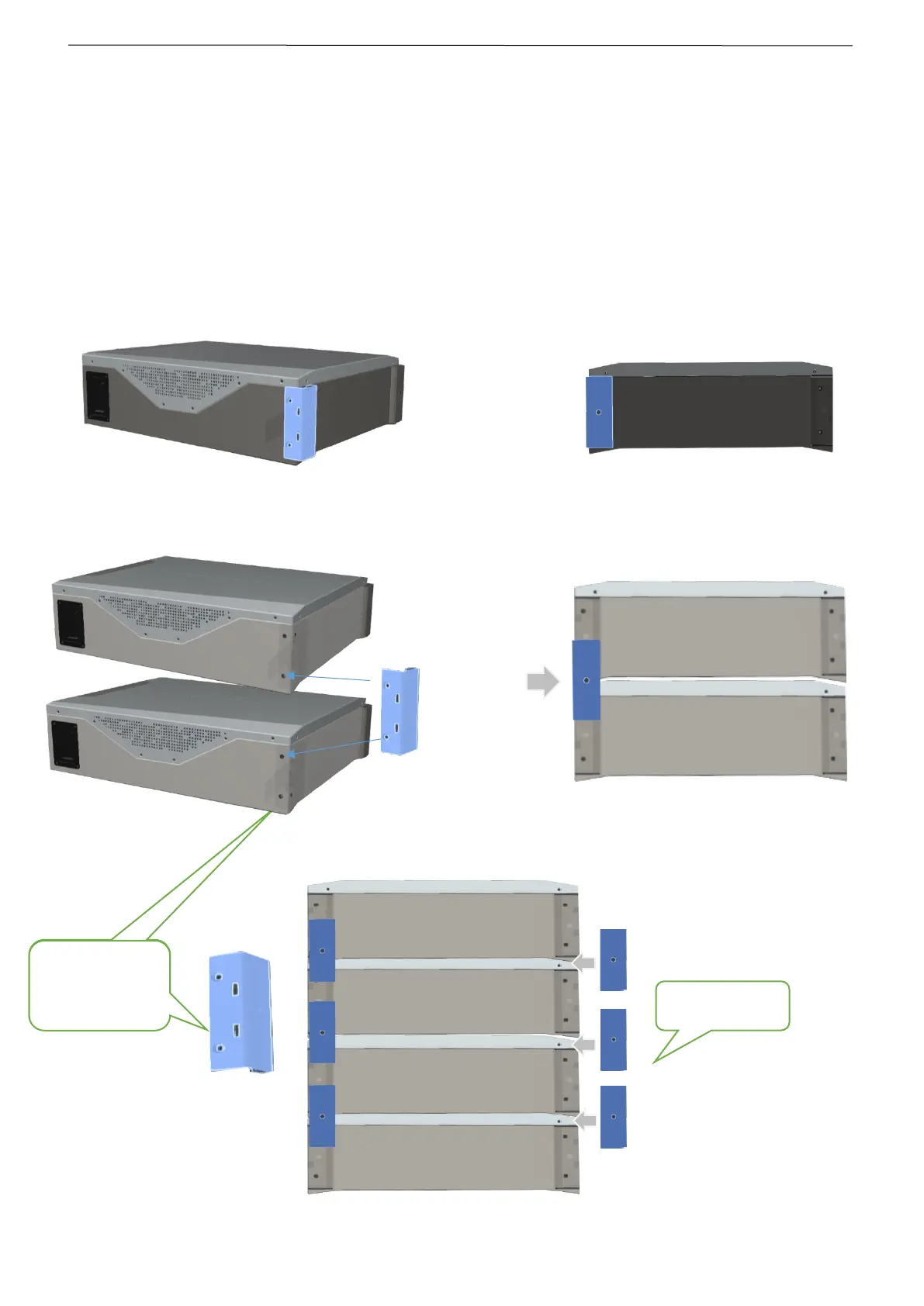 The stack configuration shall be concluded by interlocking the modules by using the module feet as