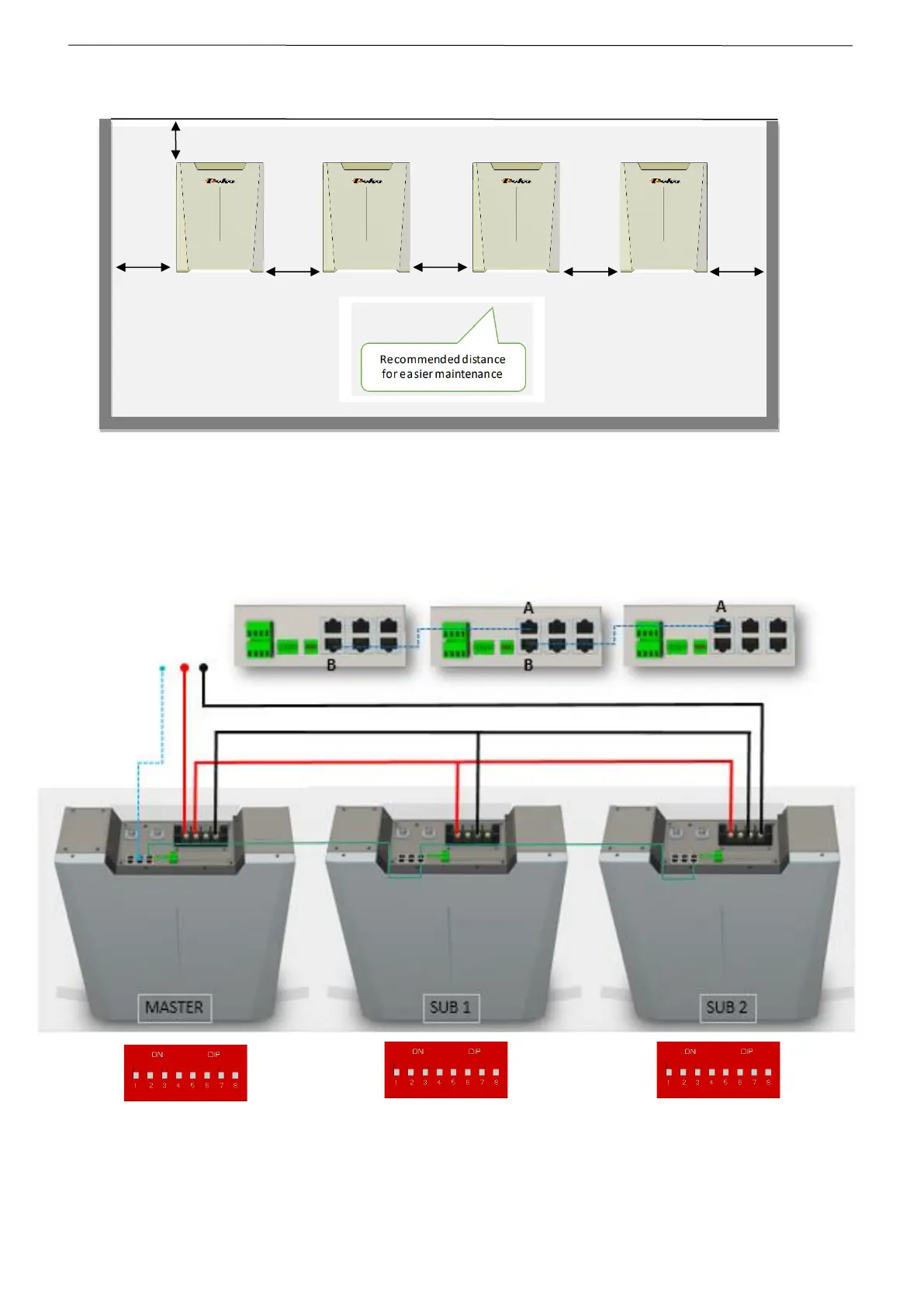 Note: In a single cluster configuration, there is no need to set the DIP switch on the master battery. All DIP