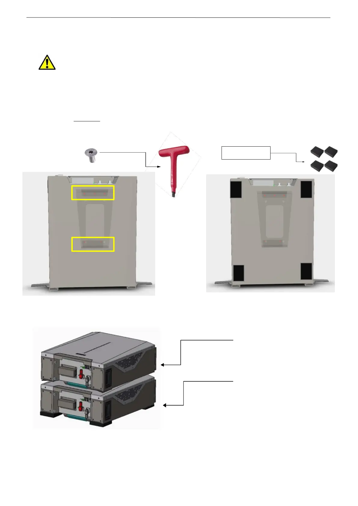 To install in the Stackable configuration, the screws on the back of the battery module must be removed.