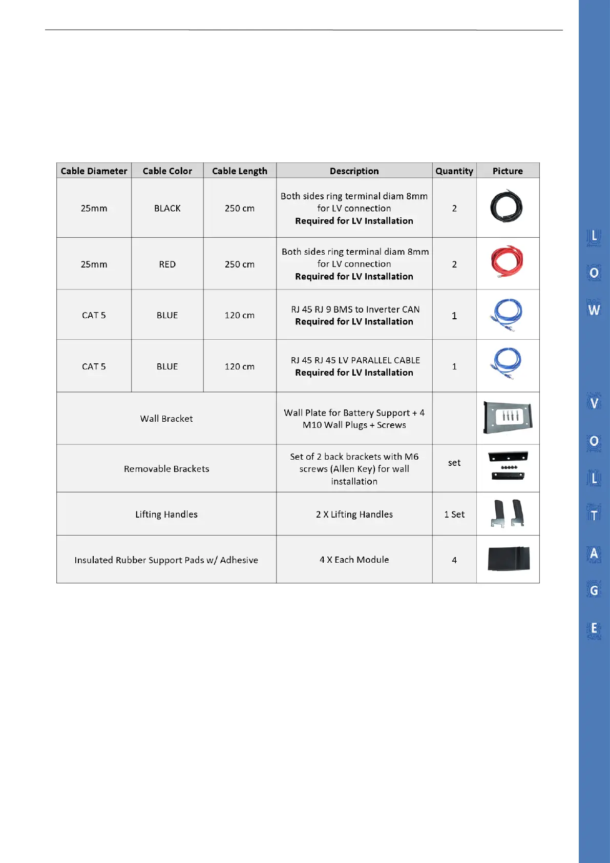 2.1.2 Accessory List (Standard Kit 120A Single Module LV)