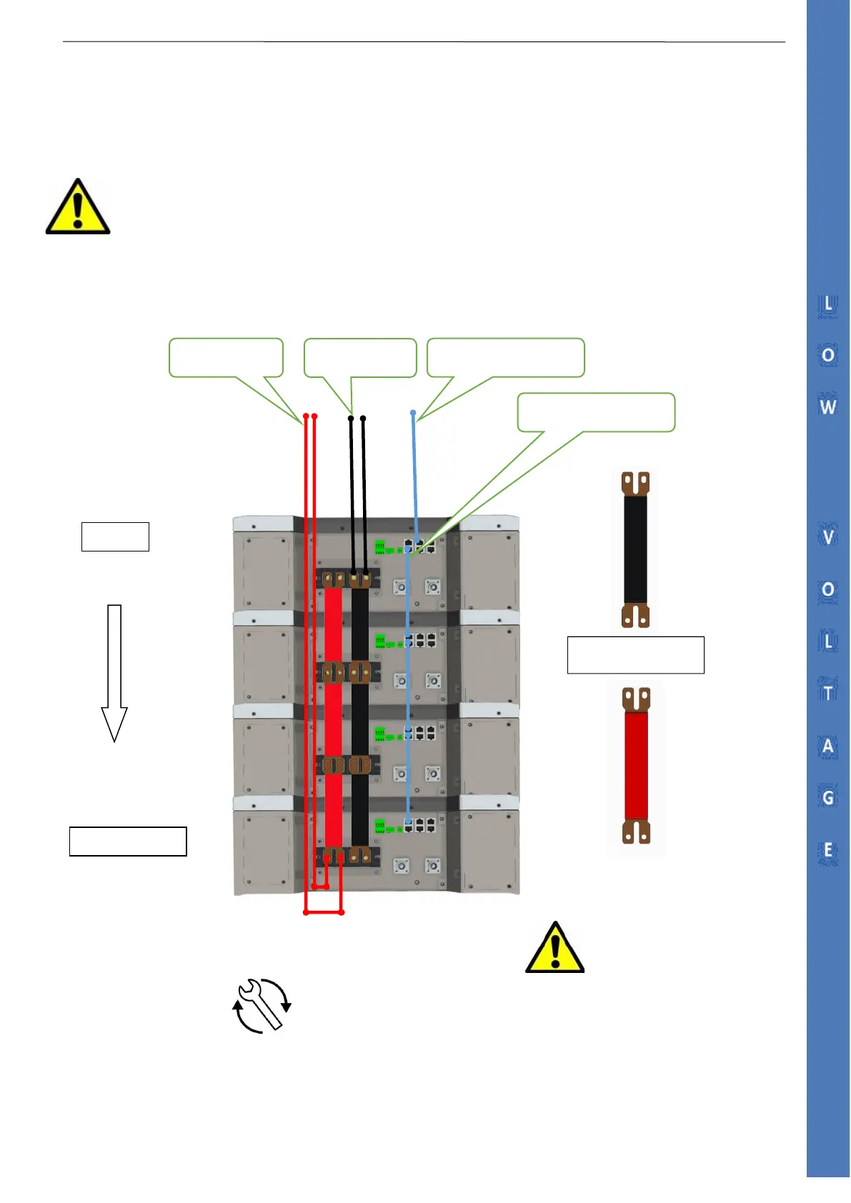 ATTENTION: Both ends of the cluster must be connected with two output cables 50 mm2.