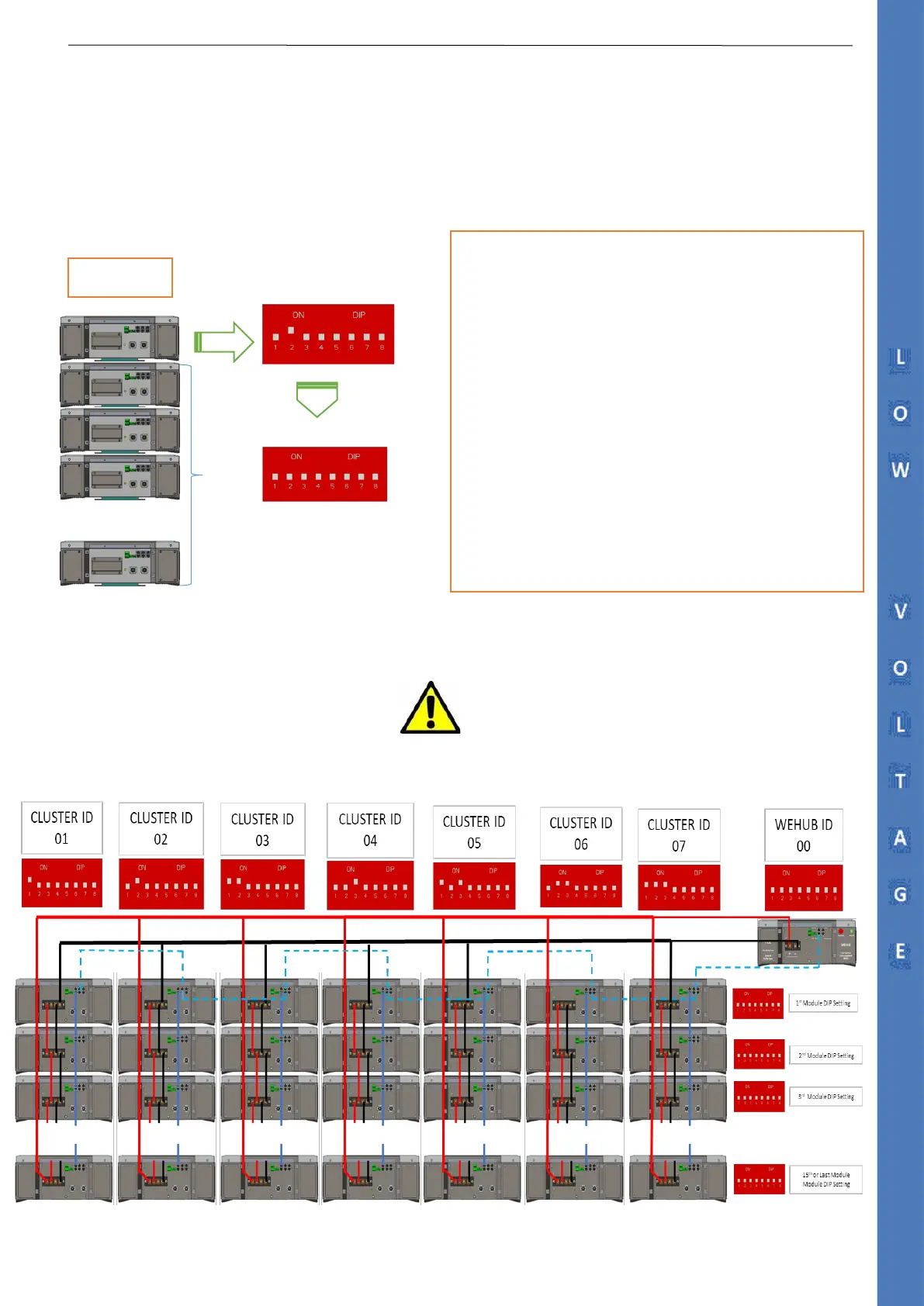 Only the first batteries of each cluster must be set following the sequence from ID 00 to ID 07 to allow the HUB to activate the