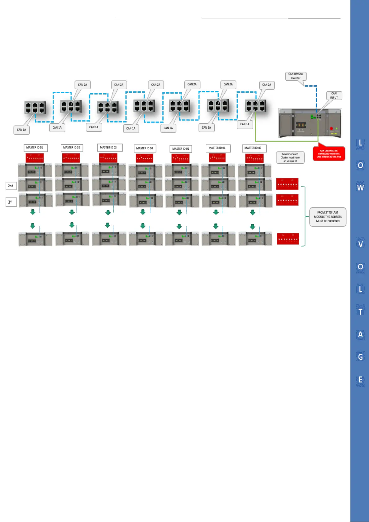 Note: It is possible to Install up to 7 clusters composed of 15 batteries each for a total of 105 batteries.