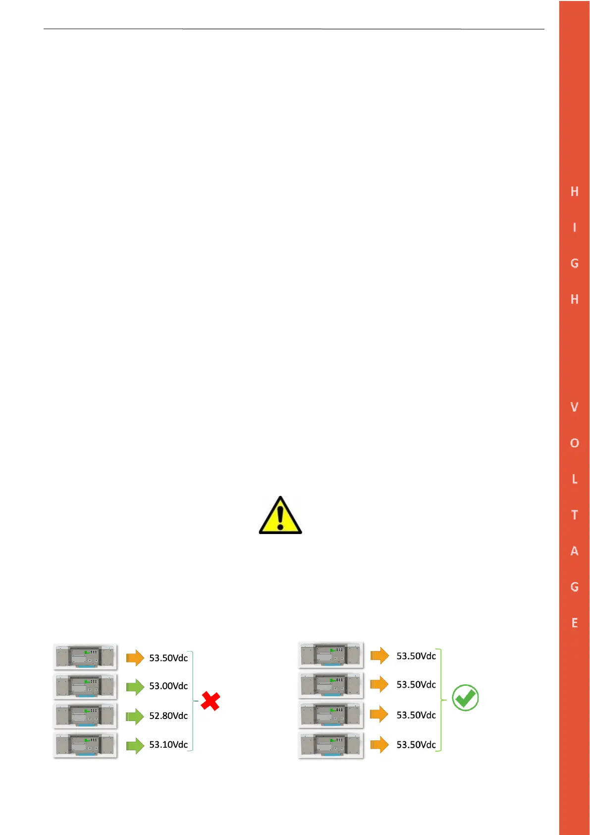 It is recommended to prepare each cluster with modules having voltage 53.5 +/- 0.2Vdc.