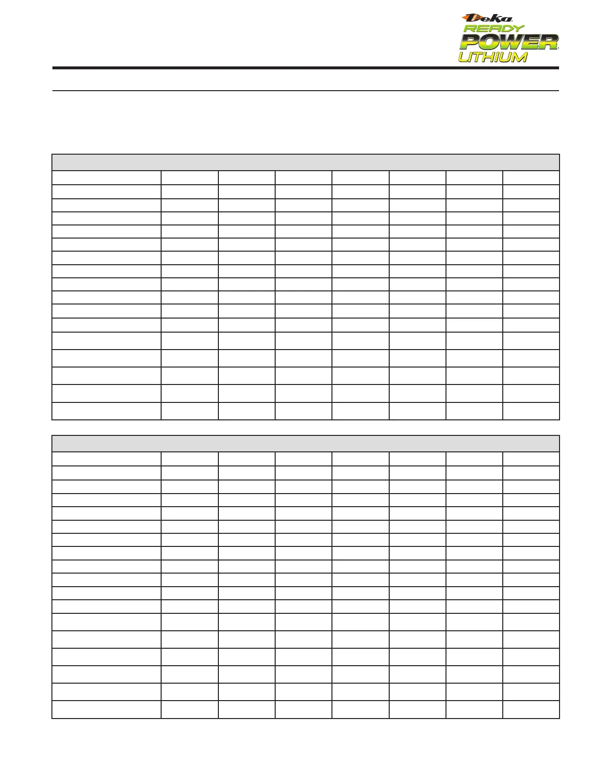 Deka Ready Power Traditional Battery Line (2/3 Contactor) - Technical Specifications