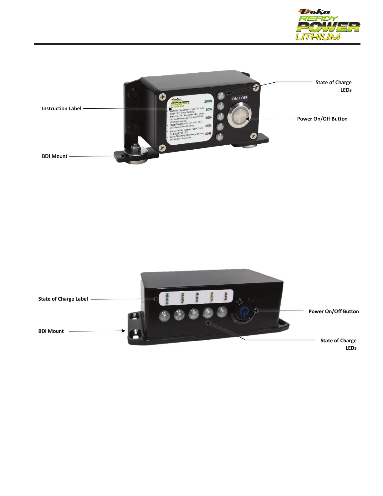 Deka Ready Power battery systems have two types of product ID labels. A “battery” ID label, found on the battery lid and an “assembly” ID label