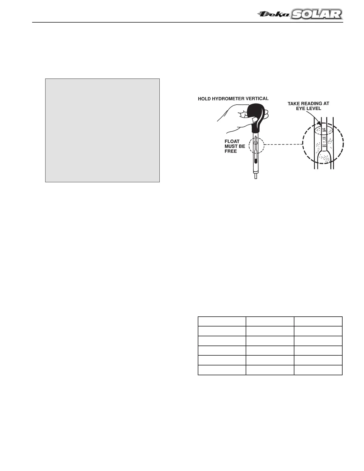electrolyte. If the hydrometer has to be removed from the vent