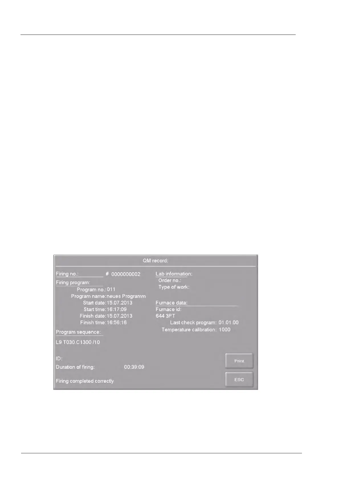 the progress of the set program, especially the target and actual values of the Firing parameters