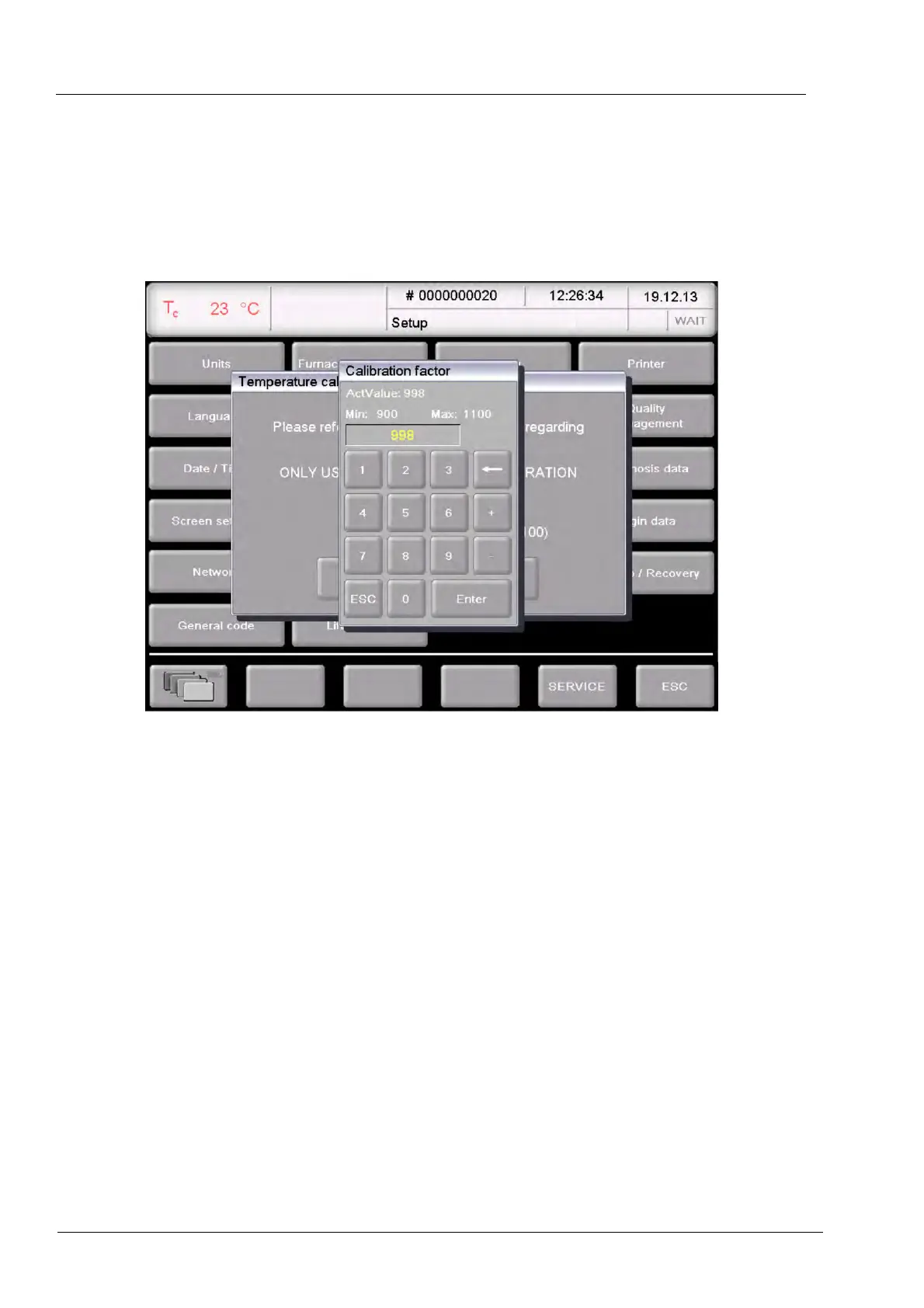 nput field for the CCF. The numeric keyboard window "Calibration factor"