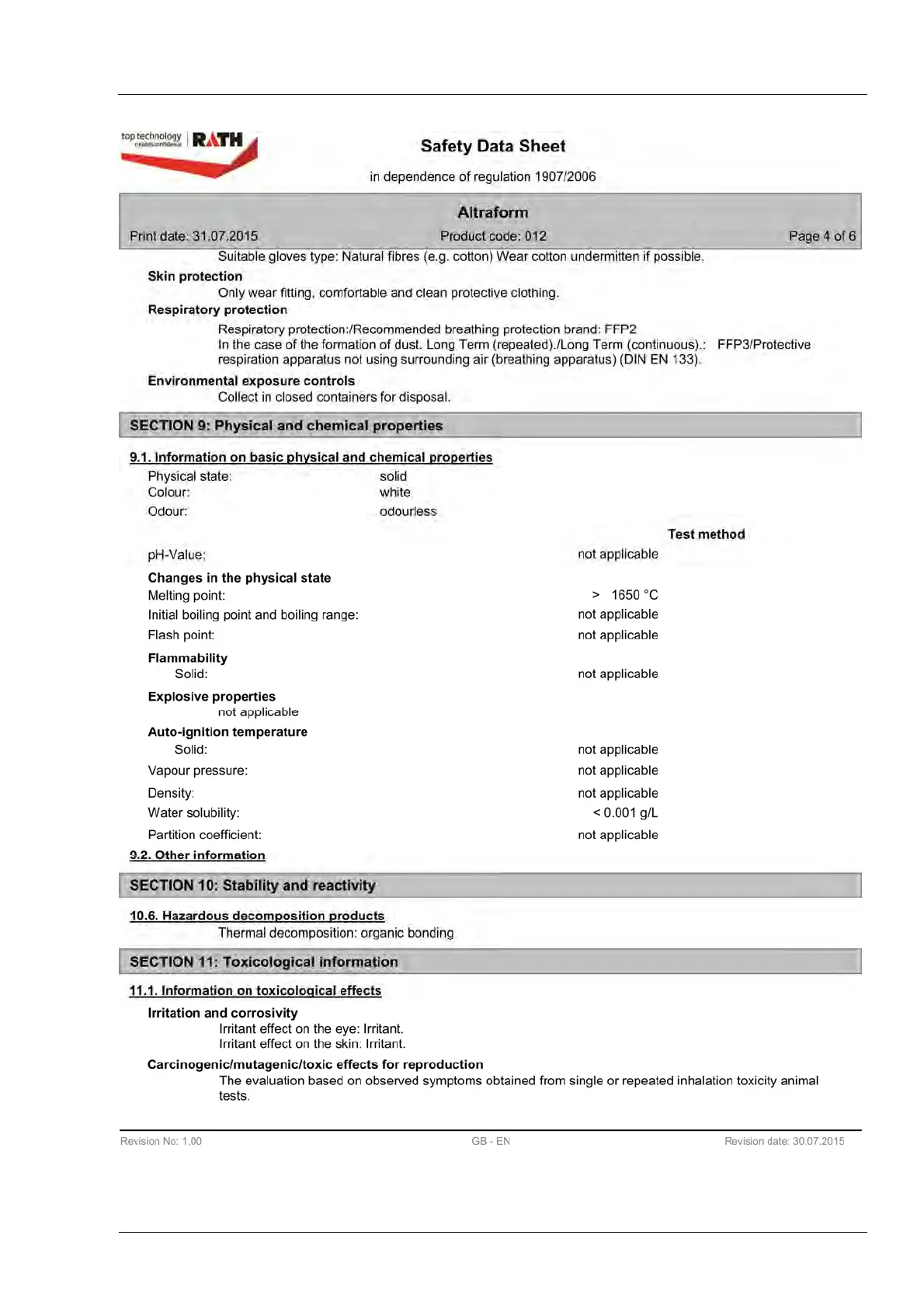 9. Safety data sheets
