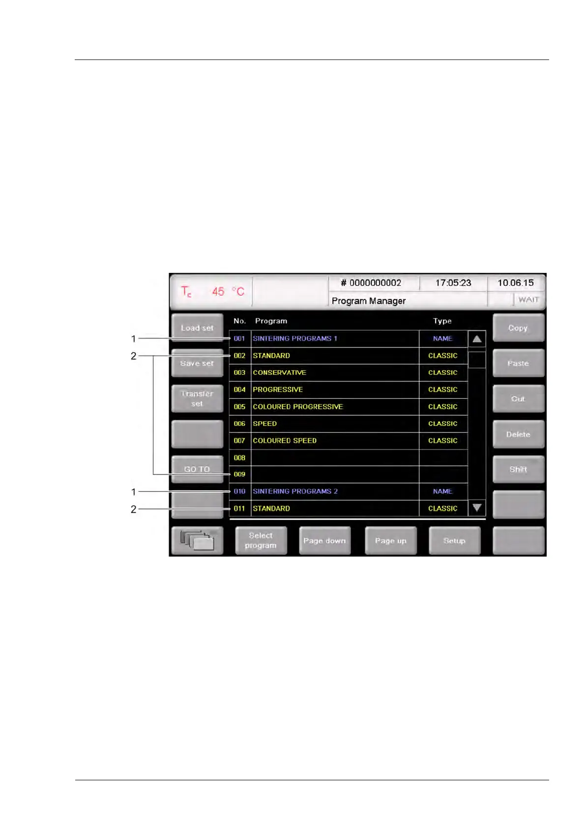 Fig. 5-6 Program Manager (example): Display of folders and firing programs