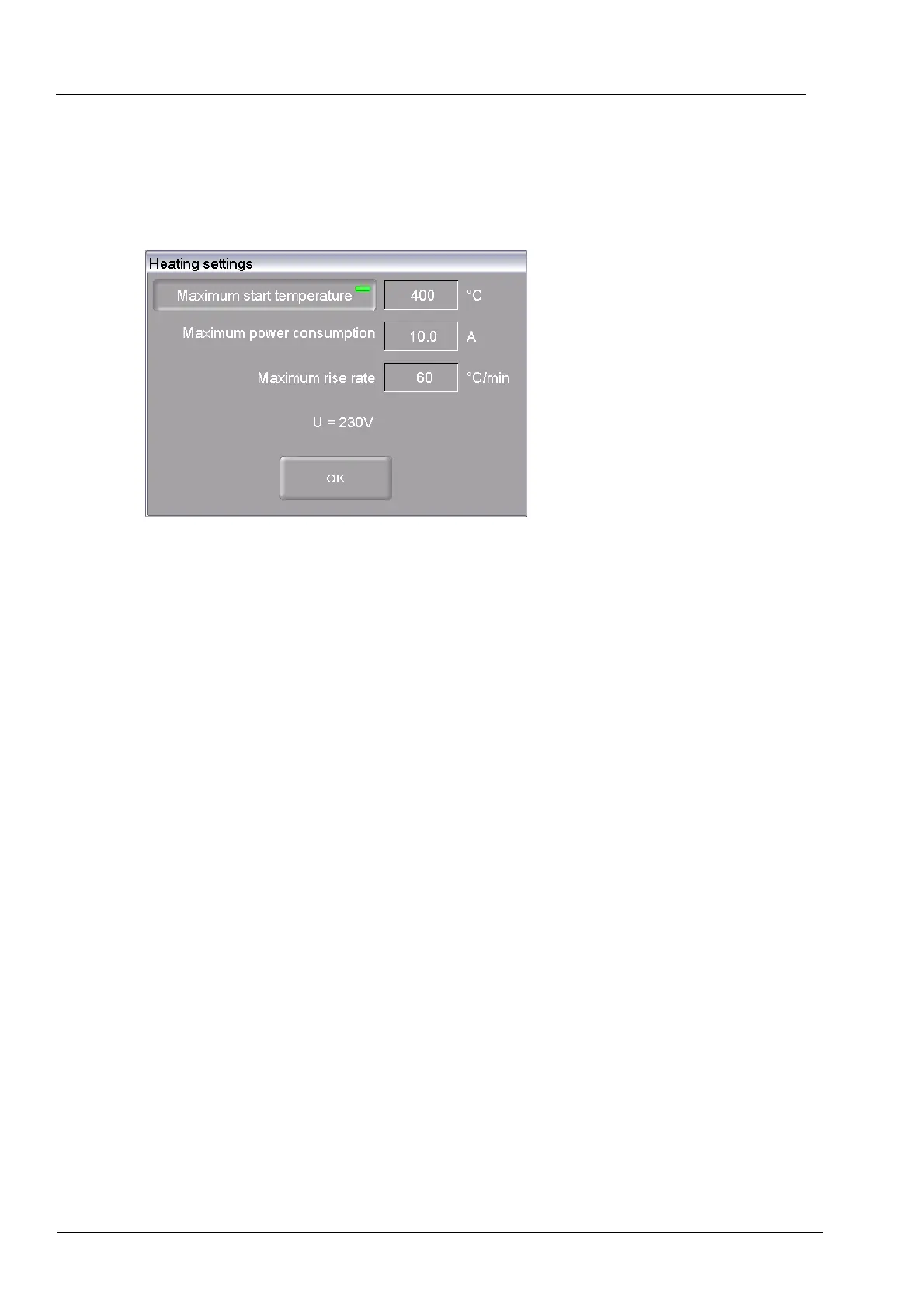 setting customer-specific maximum levels for the start temperature [°C], power consumption [A]