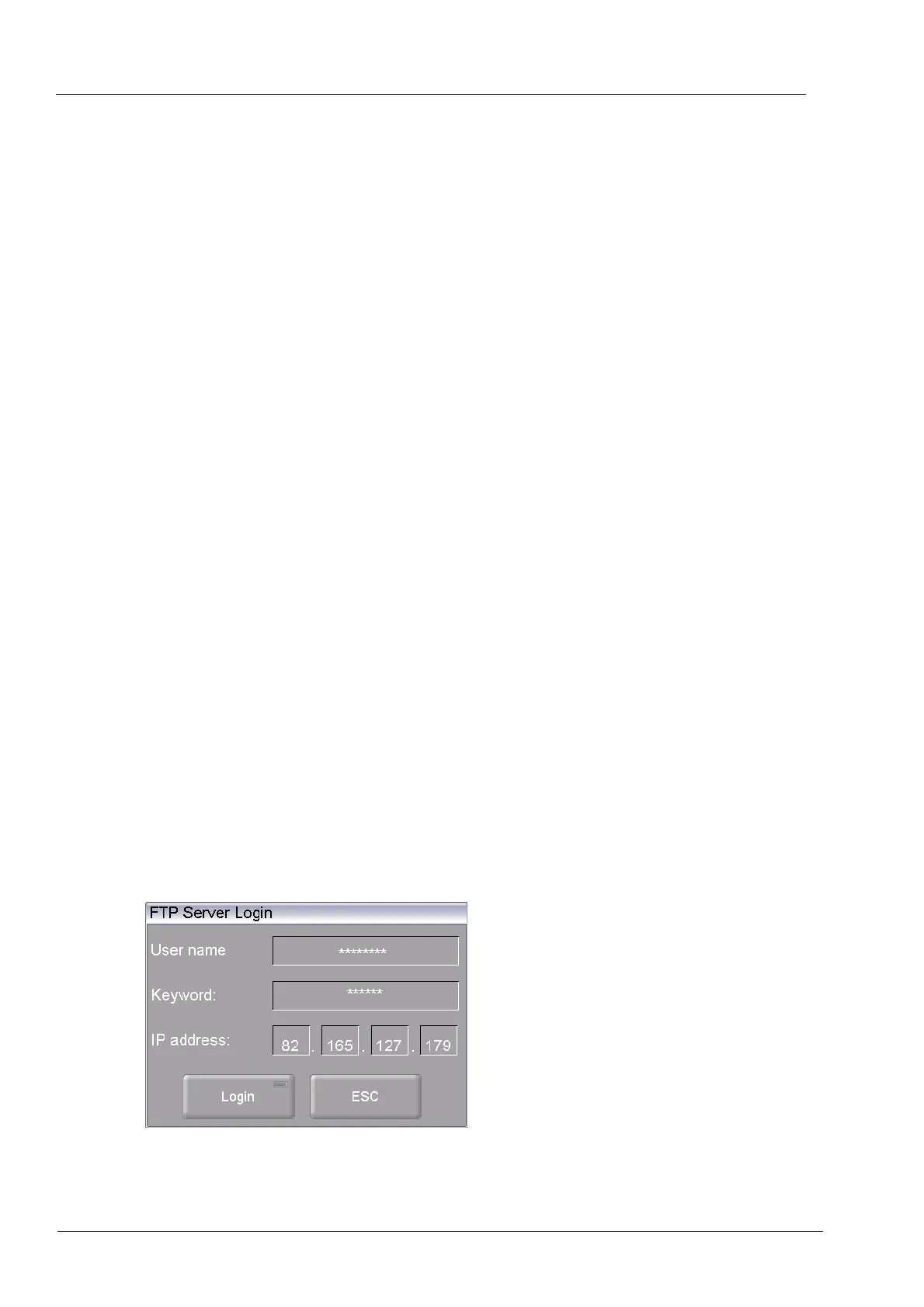 In the "Setup" menu, click the [FTP Server Login] button. The following window for accessing an