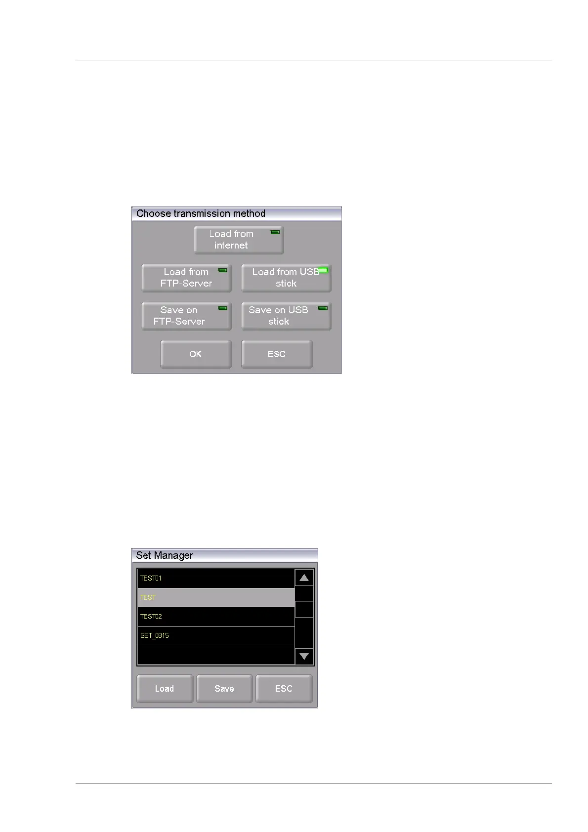 • “Load from USB stick” uploads a set from the inserted USB stick,
