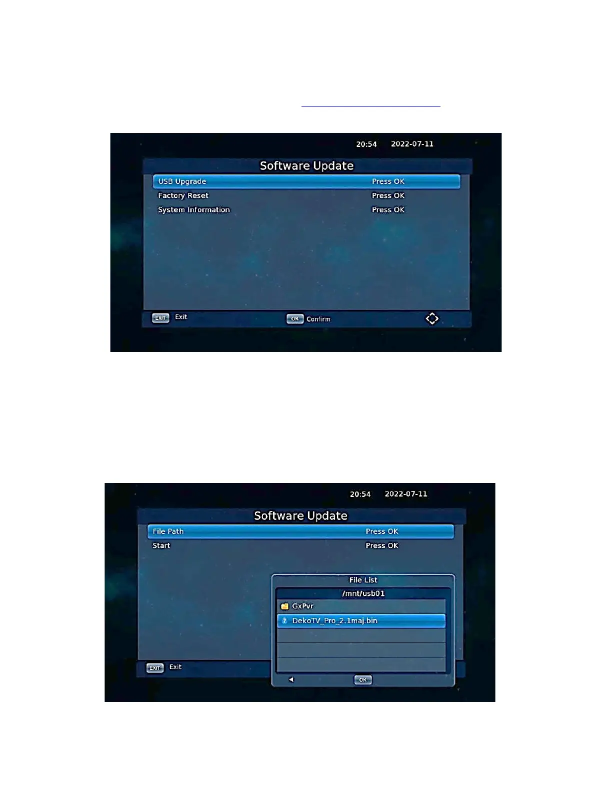 With latest Software, the decoder can be also updated via Internet, directly with the Decoder Menu.