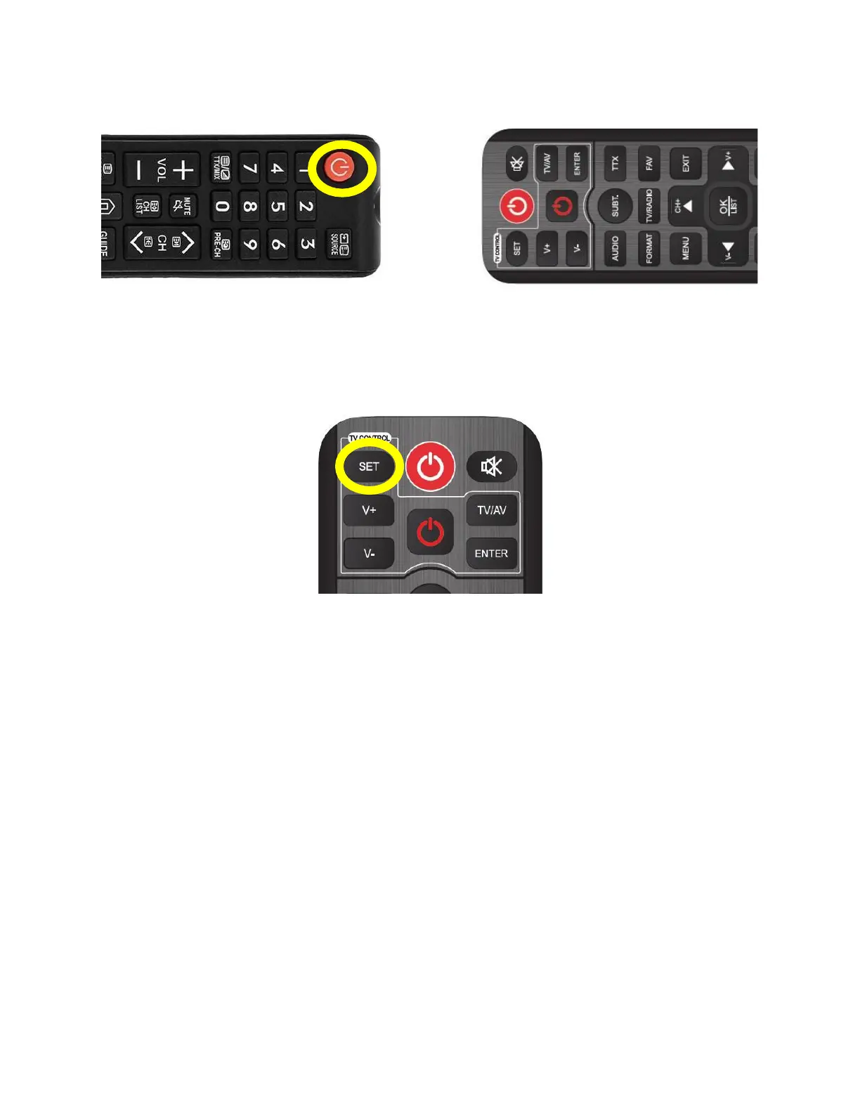 The "SET" button is not programmable. Any 5 buttons from another remote control can be programmed,