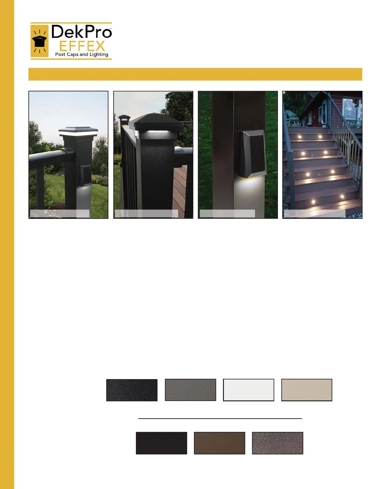 Available for Post Caps (Glow Ring & Down Light), Vertical Post Lights & Recessed Stair Lights. Lights include