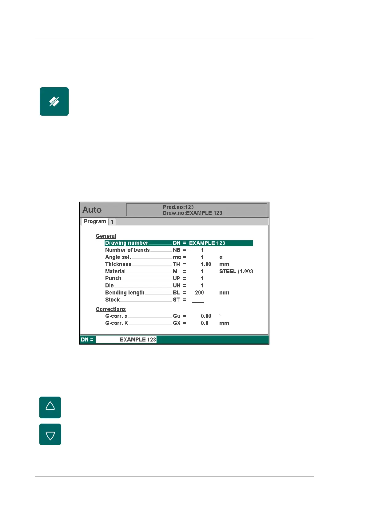 This page gives all data which are the same for every bending of the program (main data of