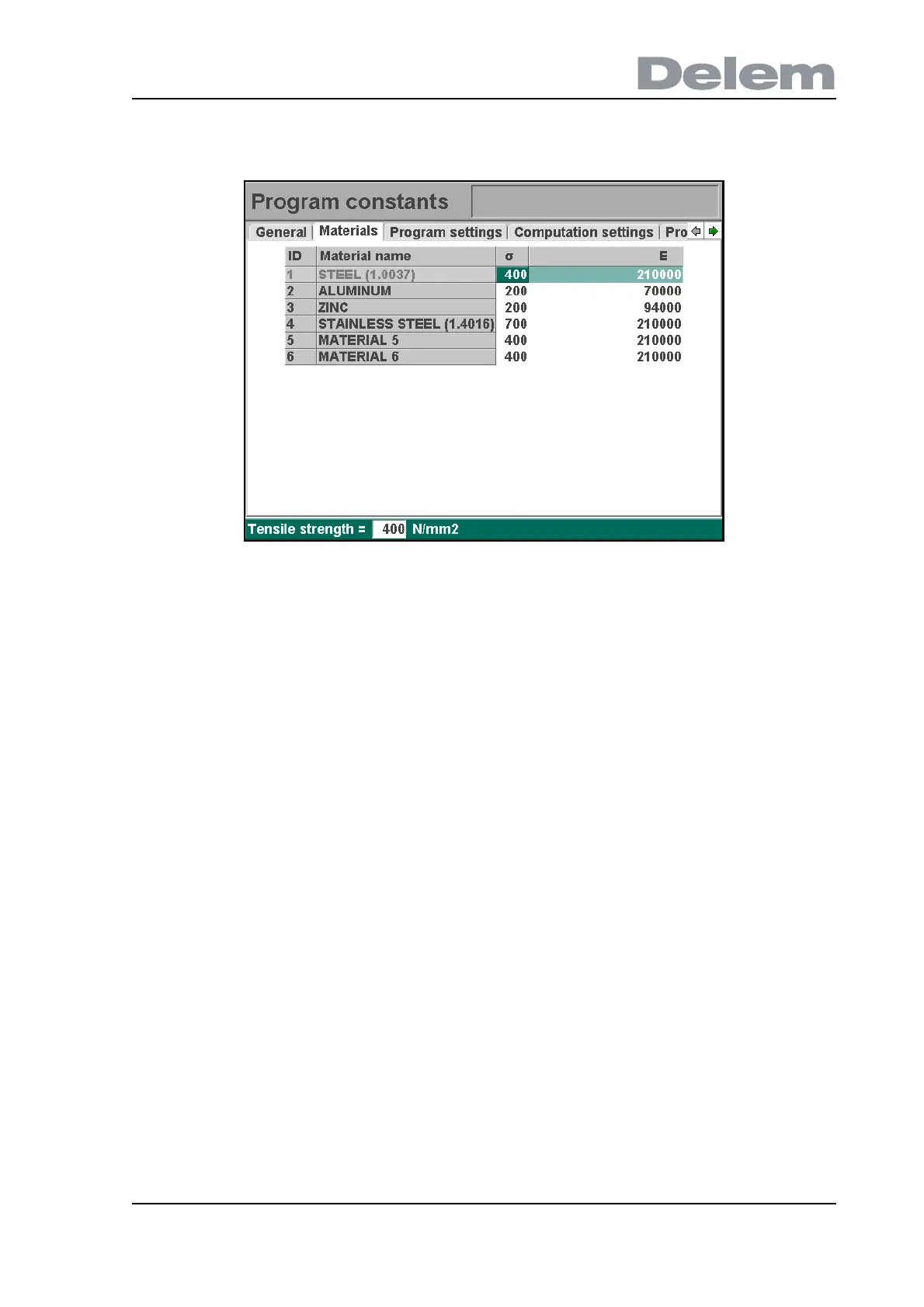 program new materials or delete existing materials. A maximum of 6 materials can be